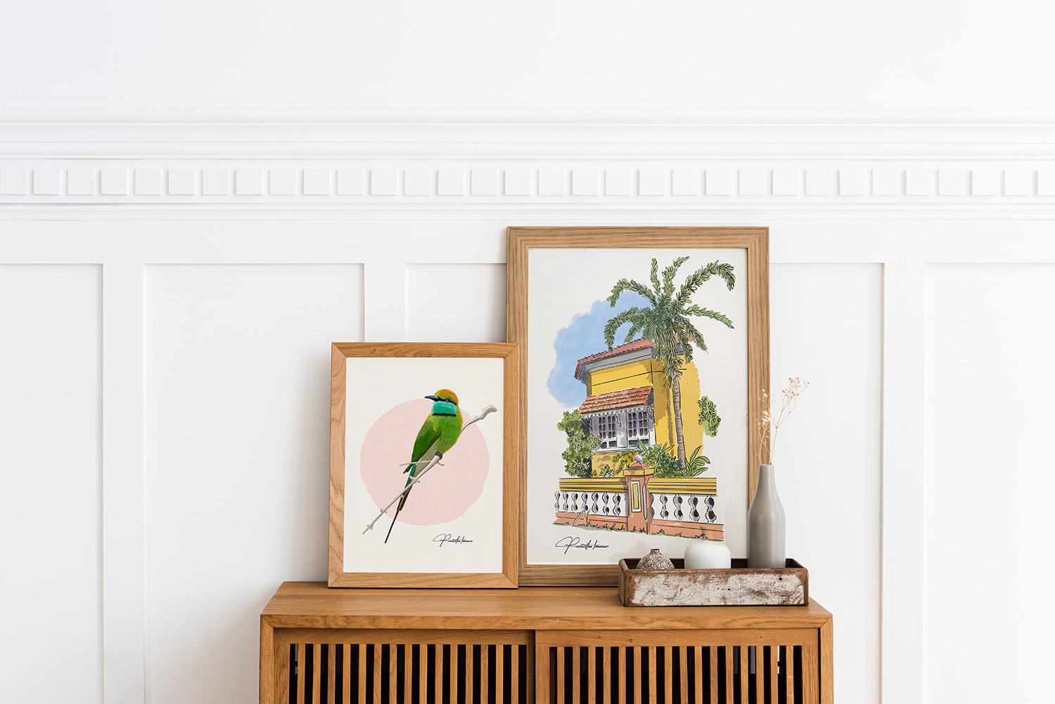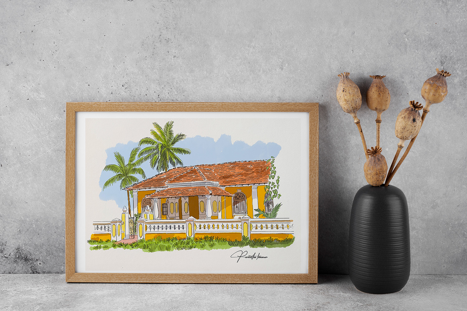 Rooted in quiet observation and slow living, this collection brings together watercolour and digital Original artworks created by artist Parinitha Konanur , inspired by heritage houses, native flora, and local fauna. Each piece carries a sense of place timeworn textures, and living details that feel gently familiar. The artworks are designed to sit effortlessly within thoughtfully curated interiors, adding depth without demanding attention